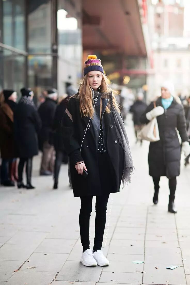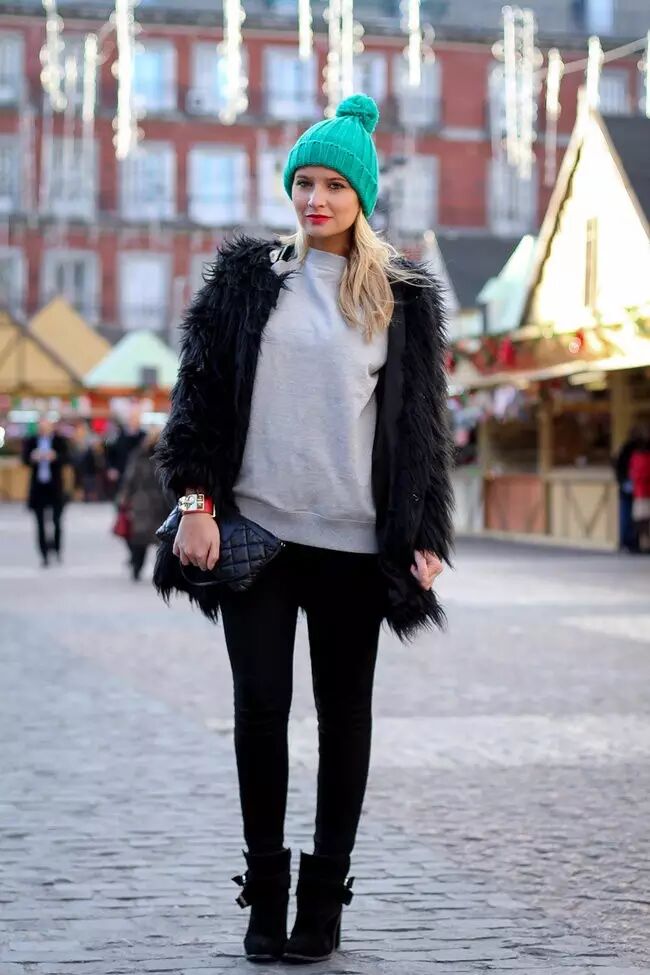 ▲其实黑色毛线帽是最百搭的,和国人的发色融为一体,搭配任何衣服都可以!