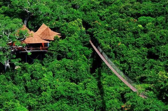 丰富的热带植被,登顶可俯亚龙湾的美景。这里也是拍摄电影非诚勿扰II的主景区。尤其是那个在电影中出现过的大吊桥 - 过江龙,非常惊险刺激,不要错过喽~