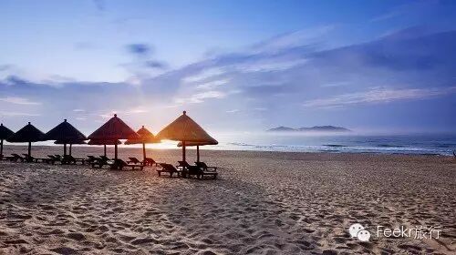 黄昏的海棠湾,没有城市的喧嚣与繁闹,举步即可抵达洁白无垠的沙滩,欣赏着一望无际的蔚蓝海域、绵延的沙滩及地平线上缓缓降下的落日。让人忍不住径直奔向柔软沙滩体验一次放松别致的热带假期。
