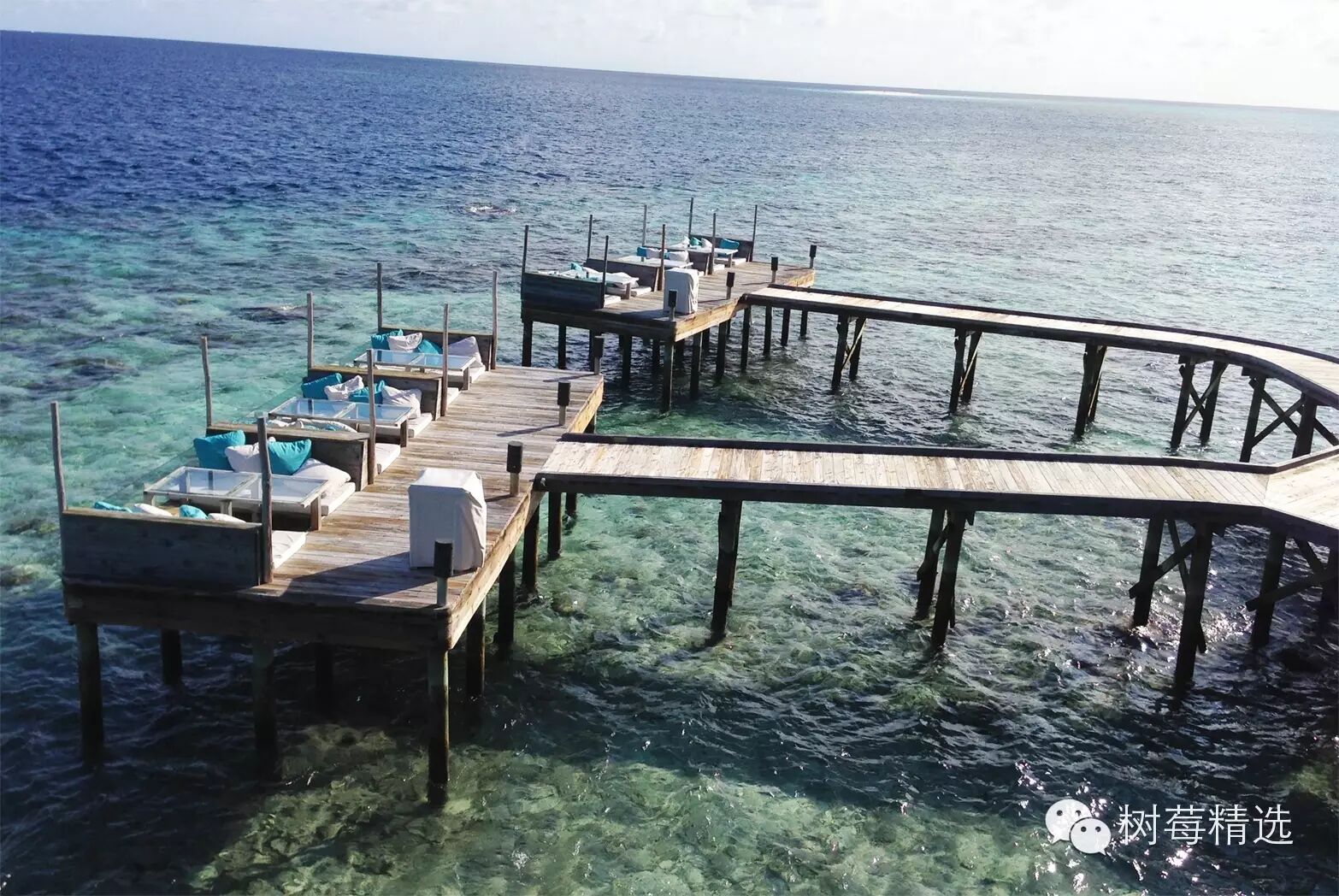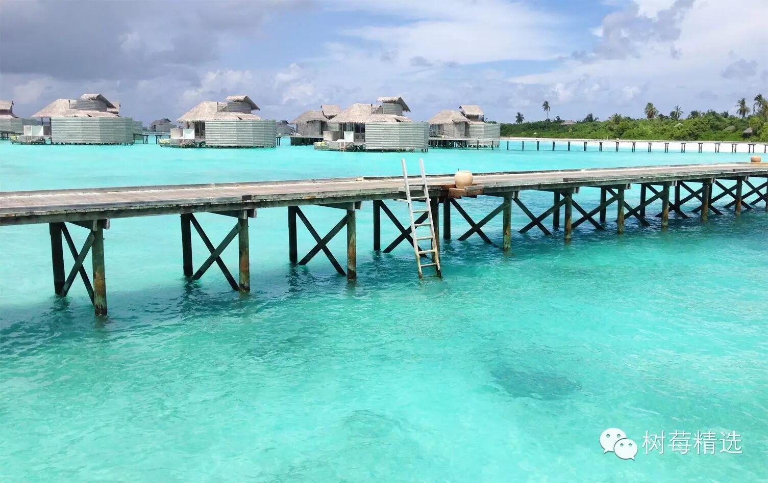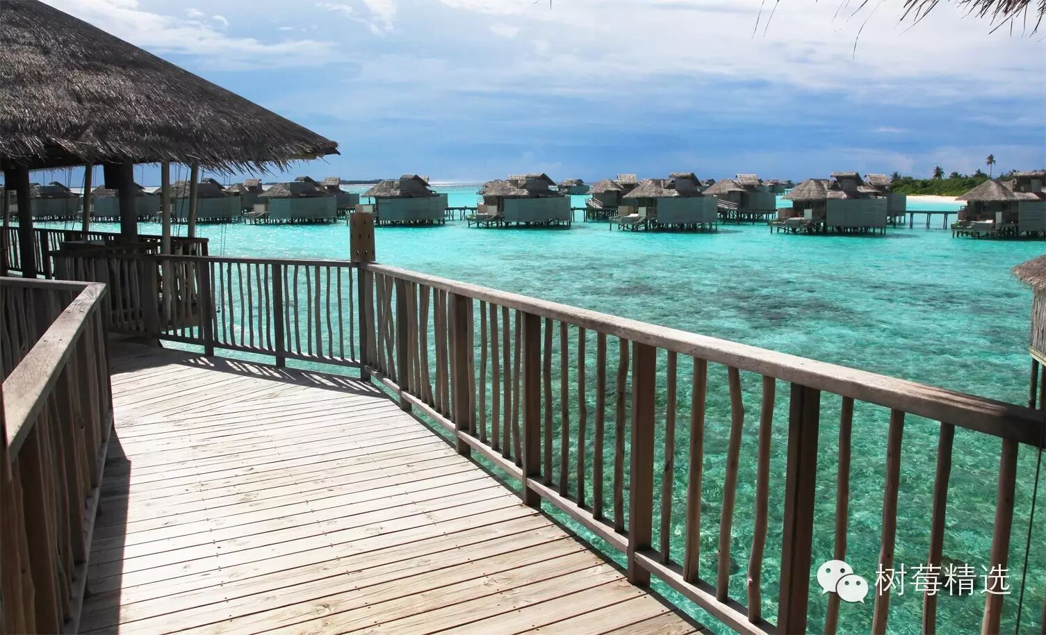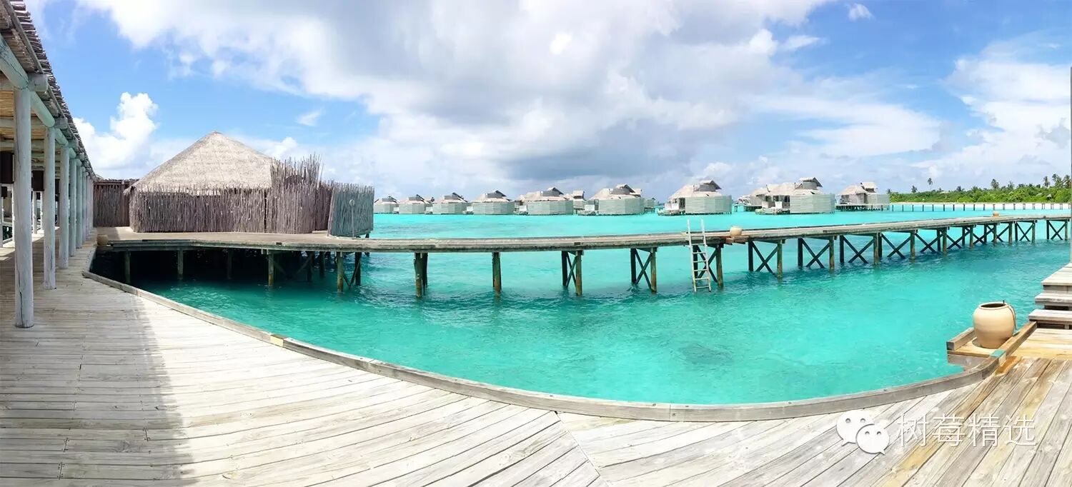 真正入岛后的第一眼-也是马尔代夫最深入人心的场景-渐变色的海水+water villa +栈桥;