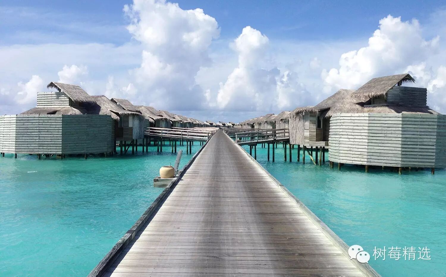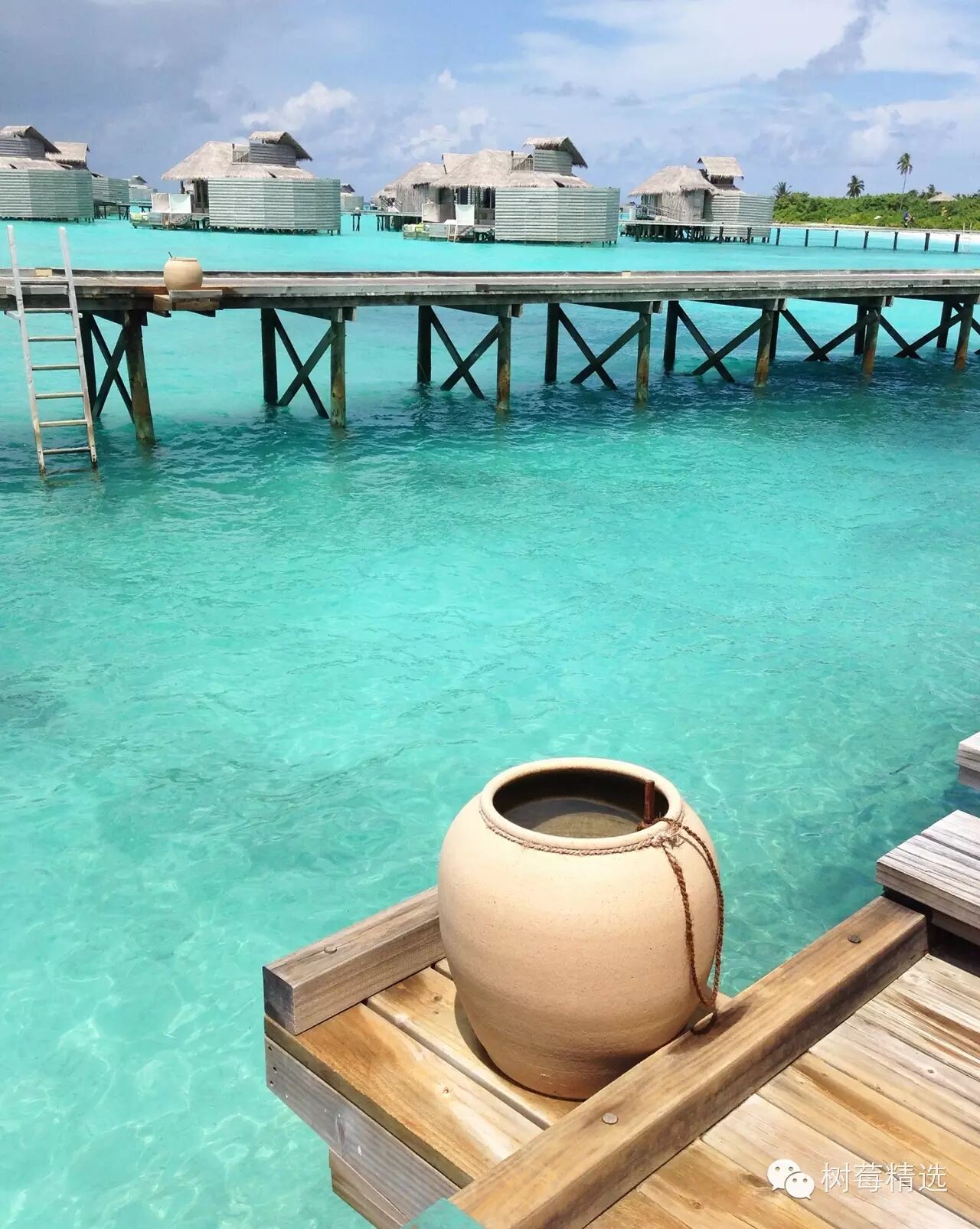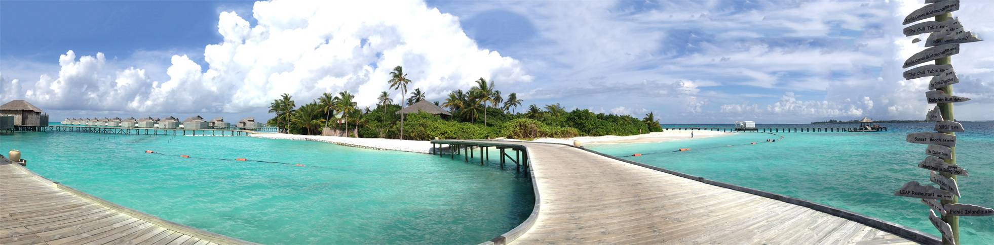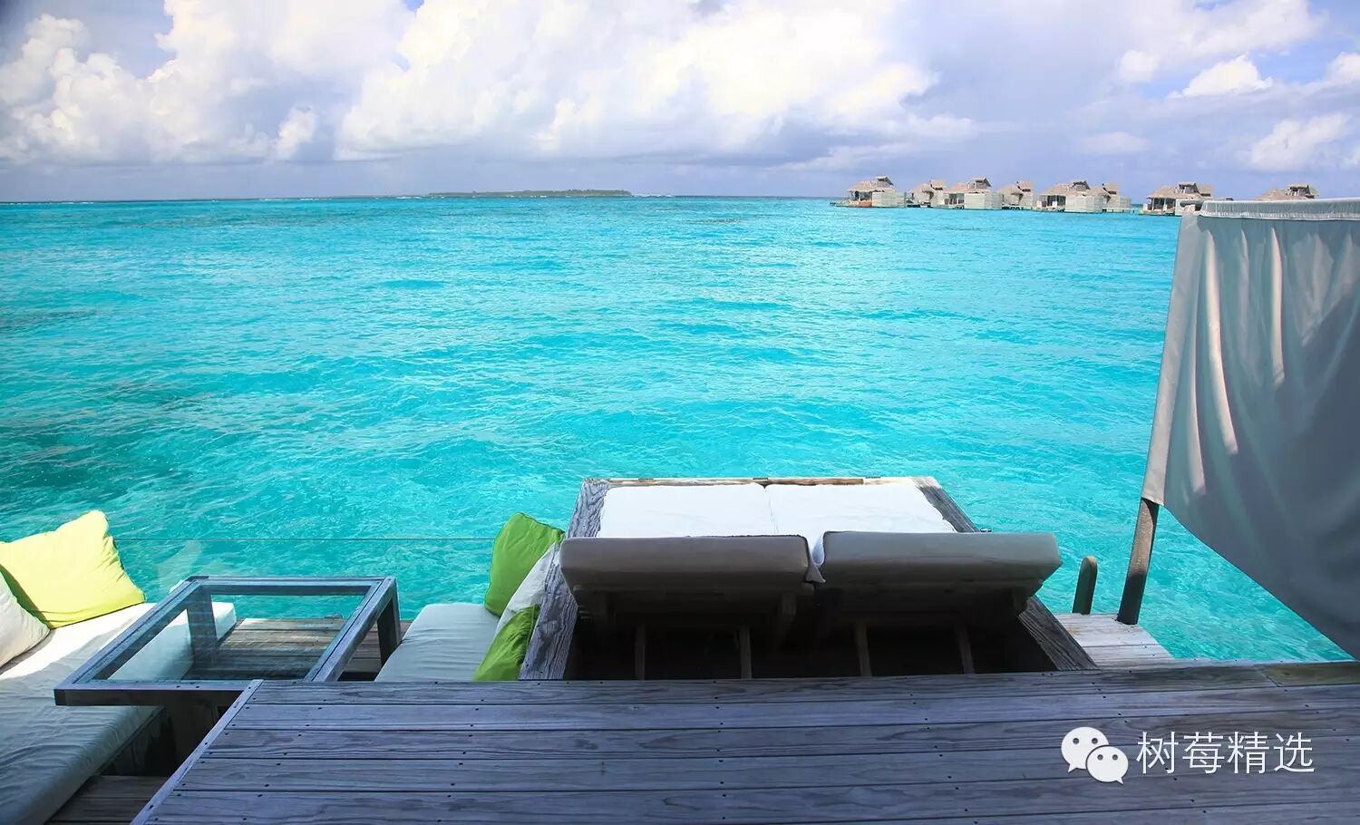 真正入岛后的第一眼-也是马尔代夫最深入人心的场景-渐变色的海水+water villa +栈桥;
