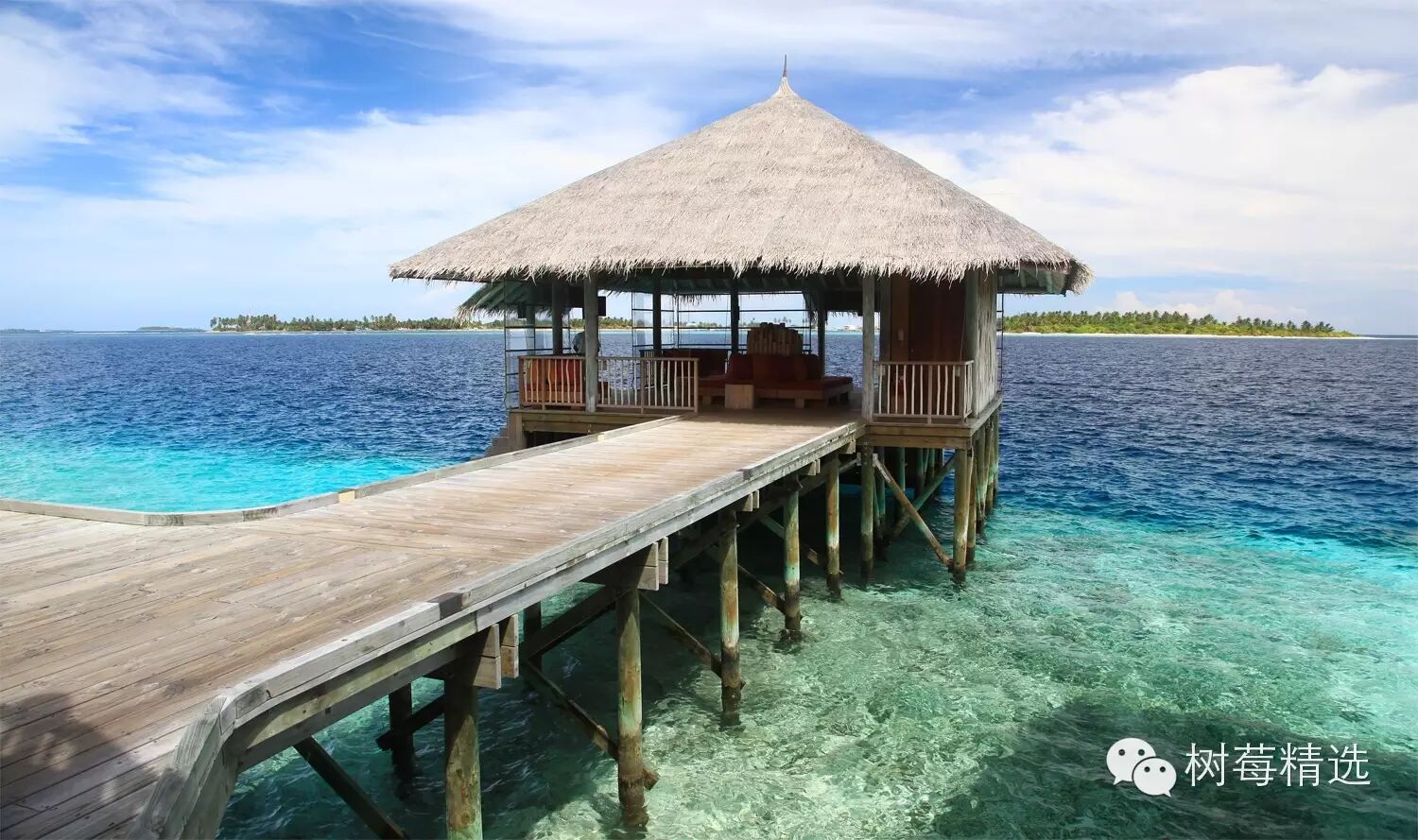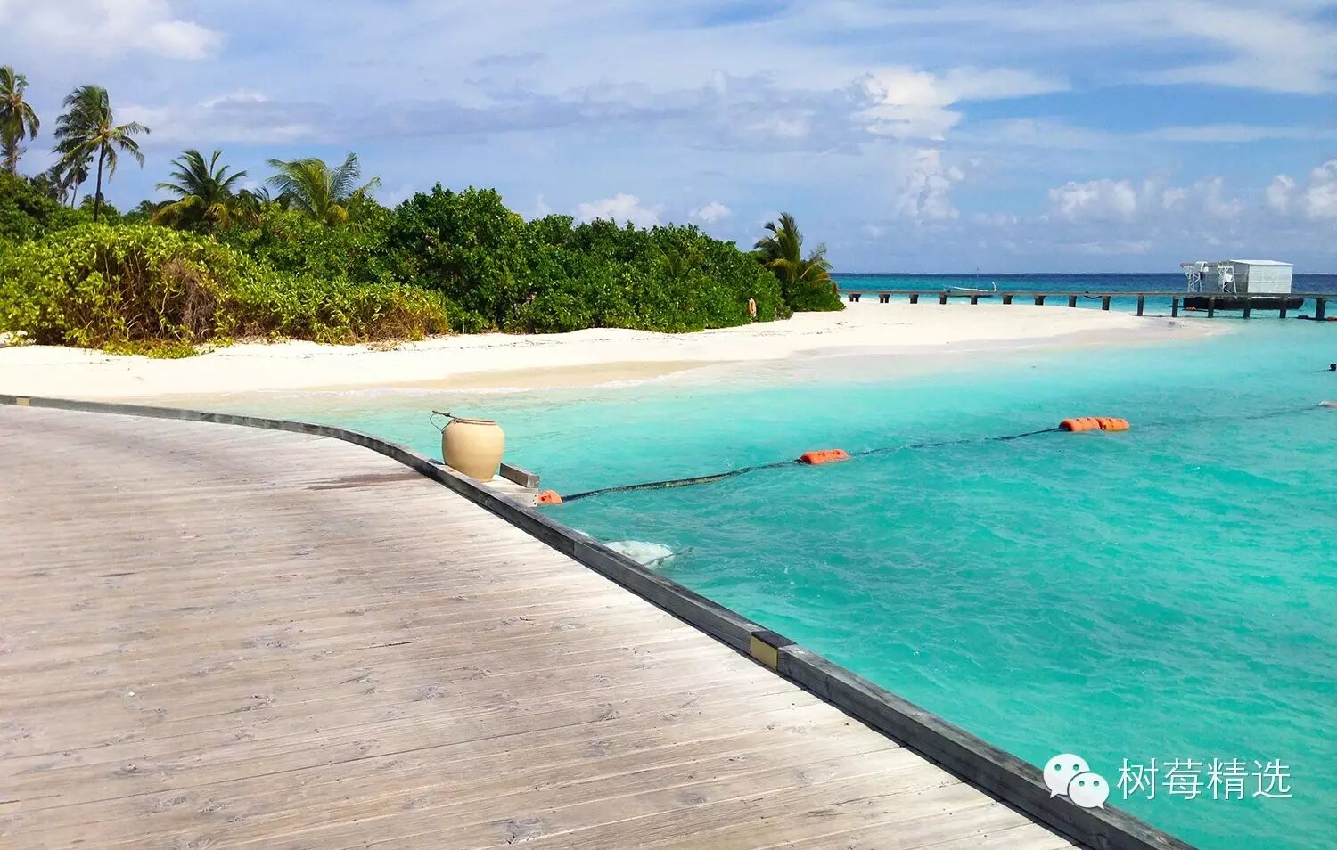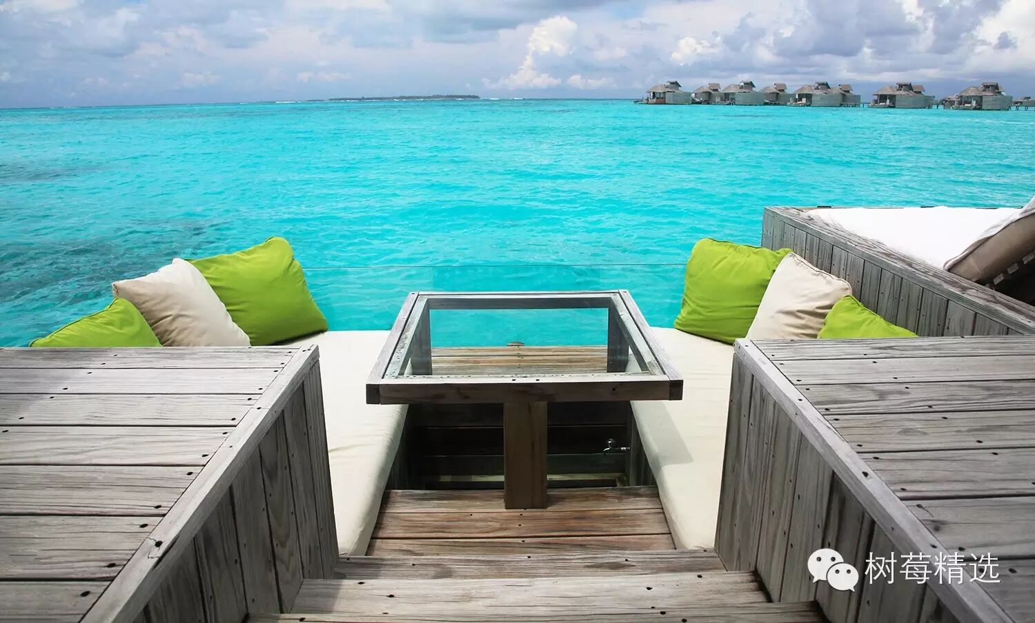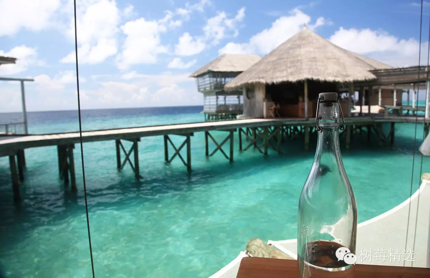 真正入岛后的第一眼-也是马尔代夫最深入人心的场景-渐变色的海水+water villa +栈桥;