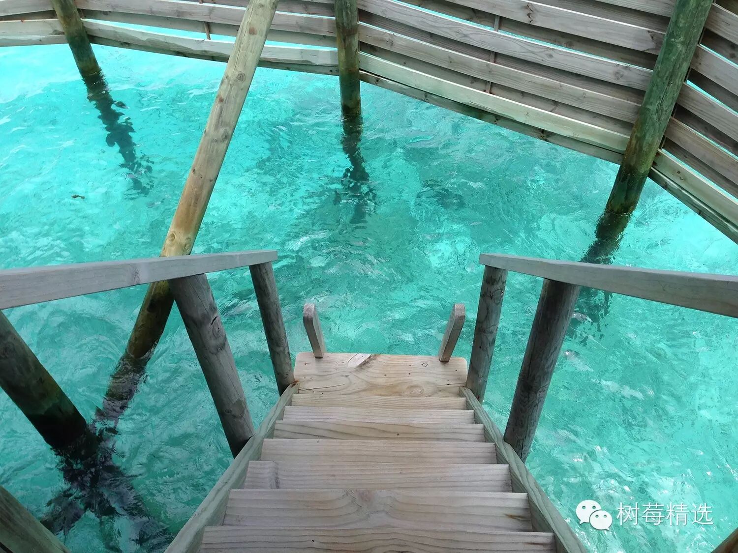 旁边有个木梯直通向大海,可以下去游泳浮潜,好方便;