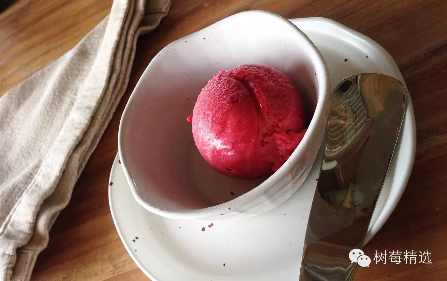 做为一个树莓控,我每次都会必点树莓雪葩(Raspberry Sorbet),喜欢他们这个银色勺子的设计,跟陶制的雪糕碗好搭;
