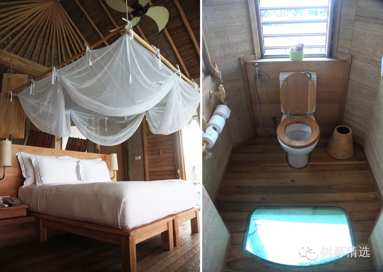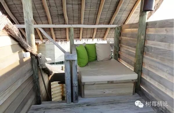 丛林深处有一个个像鸟巢一样的独立小屋就是SPA室:室内非常宽敞,躺上床上可以听见鸟叫和轻轻的海浪声: