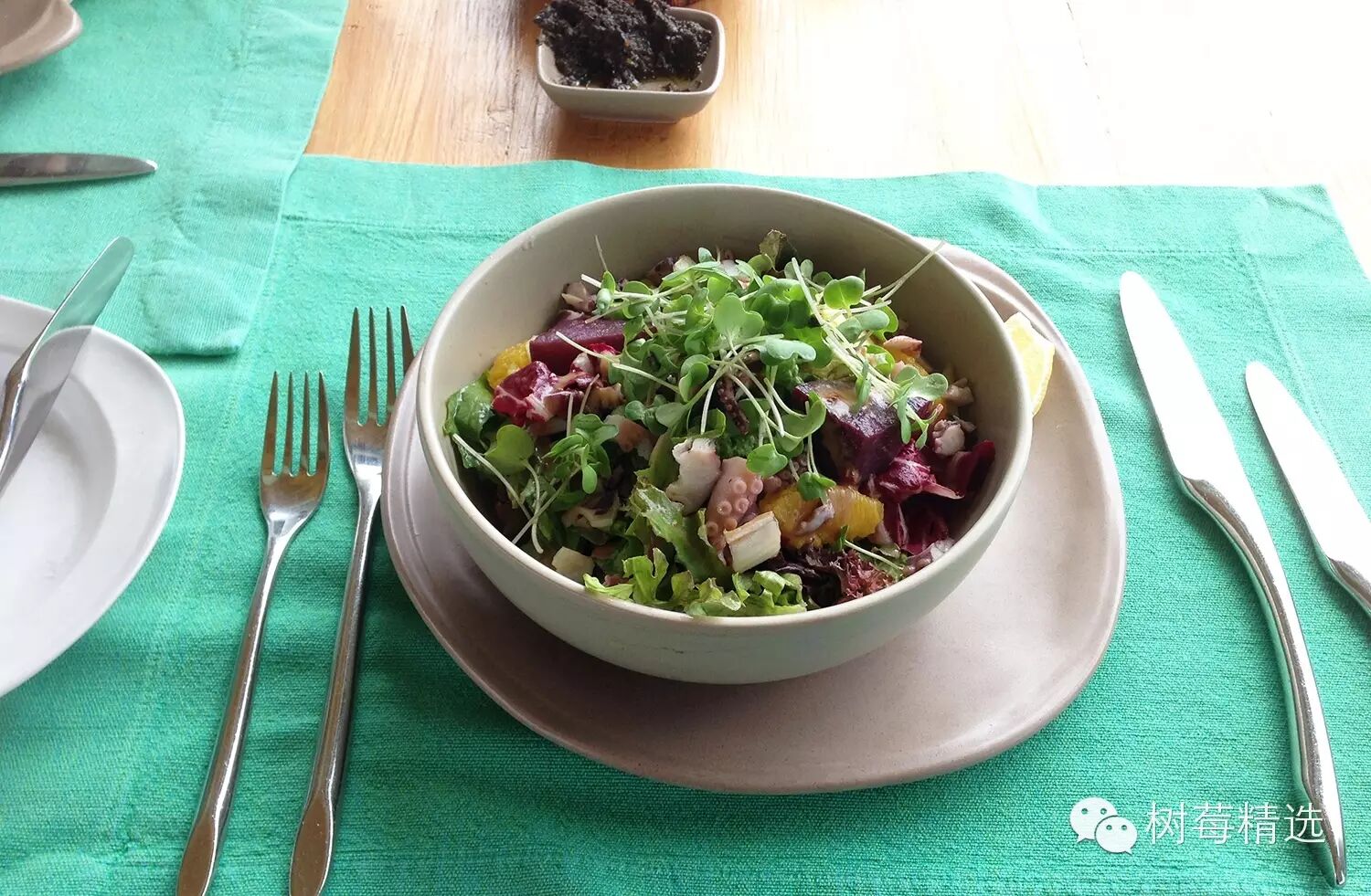 这盘色拉卖相很好,都是有机的蔬菜,而且只放了橄榄油,味道很健康,同时很寡淡;
