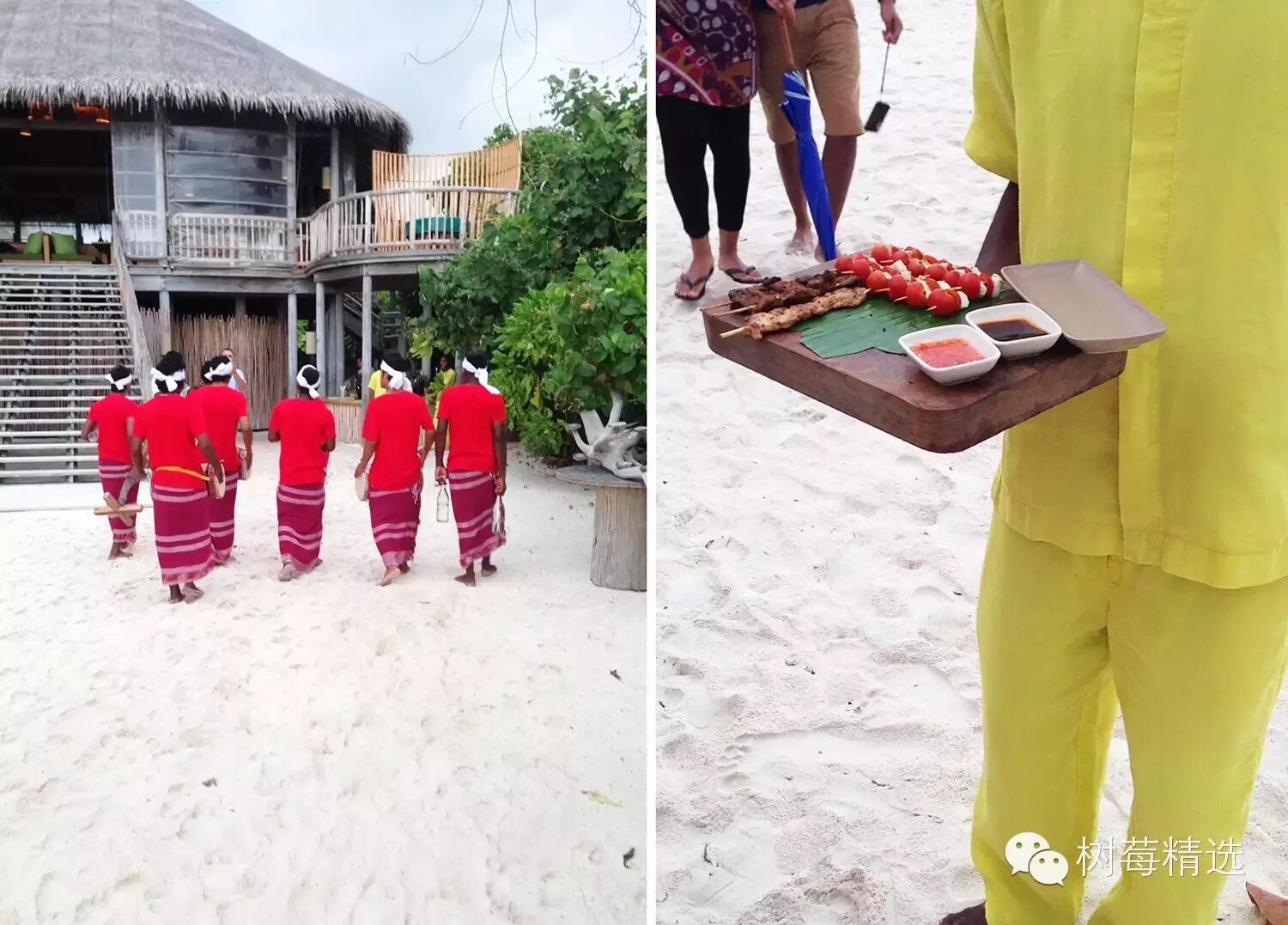 陶醉完水屋内部的各种设施,就到了晚餐的时候,度假村每逢周三都会举行一个特别的海滩趴体,一个小时的party有当地人的歌舞,免费的酒水和烧烤小食供应:
