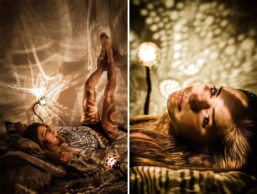 这位名叫 Vainius Kubilius 的帅哥来自立陶宛,迷恋灯光艺术已经一年多了。有一天,他突发奇想用椰子、软木塞和麂皮手工打造了这盏独特绚烂的灯。它看起来就像闪耀夺目的珠宝,让你时刻都想去欣赏反射在墙上温暖璀璨的光影。
