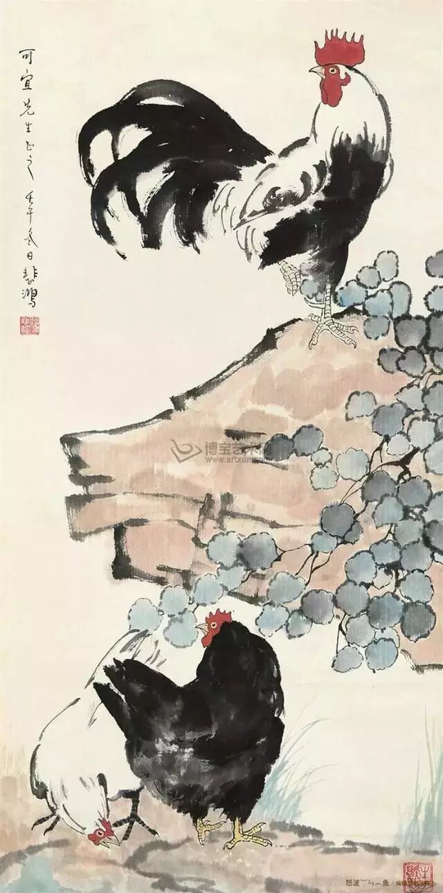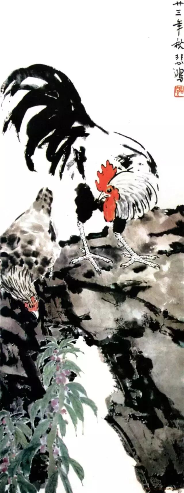 只知道徐悲鸿画的马好,其实他画的鸡也是一绝喔!