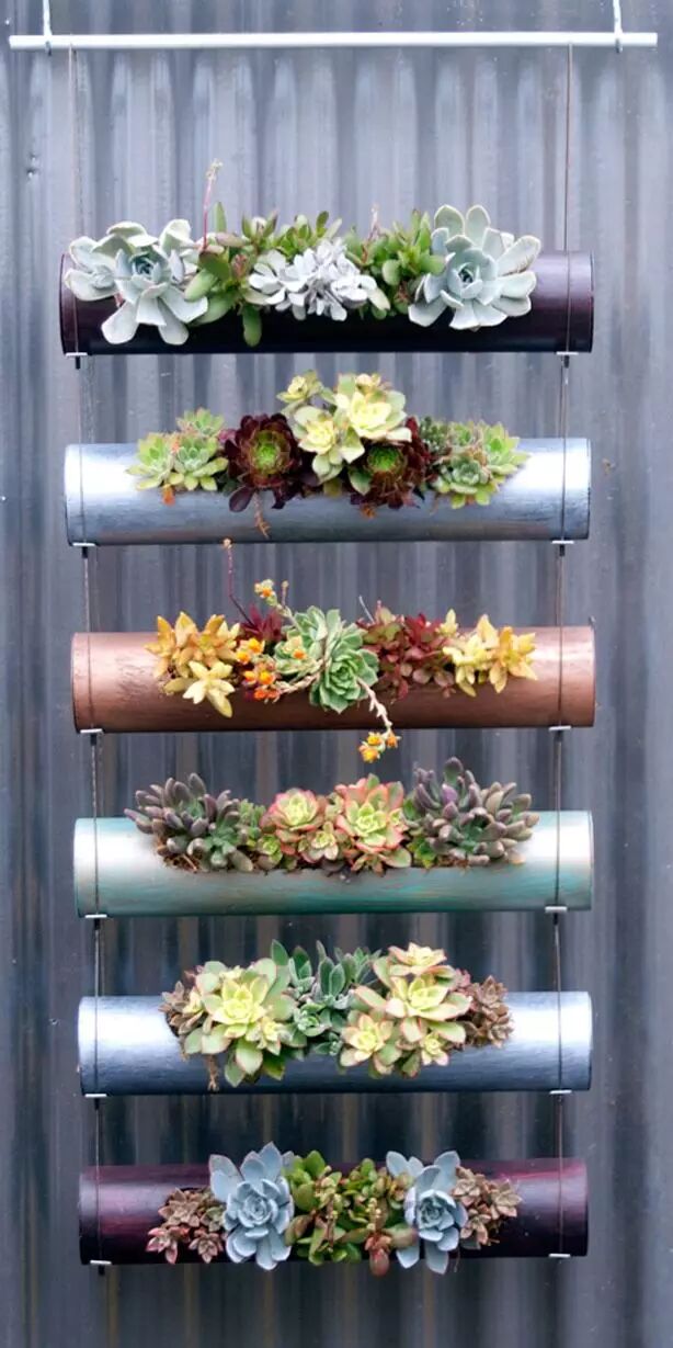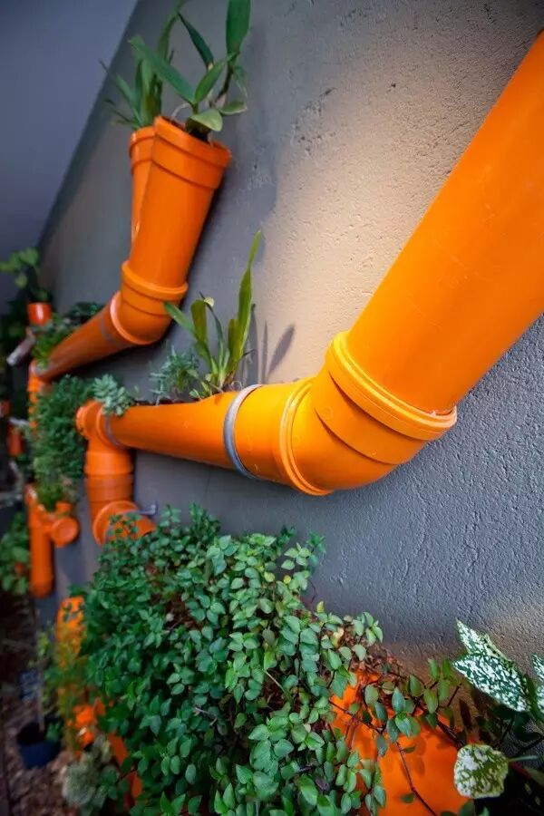 把多余剩余的水沟管道拿出来,或者到附近的一些废品店收购一些废弃的管道,砸开两半,挂起来种花吧。