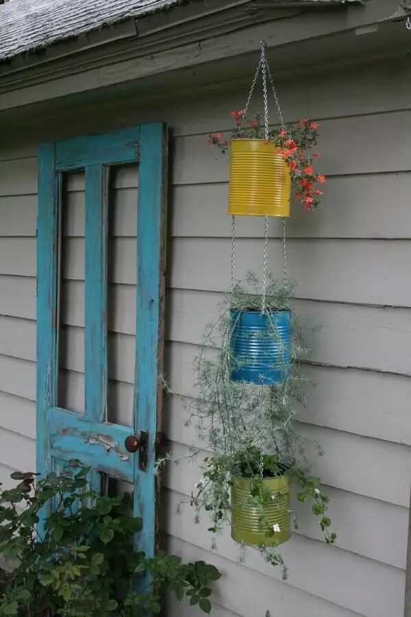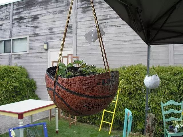 一些什么麻布袋呀、环保袋呀之类的,种上花花草草,把它们一个一个像灯笼那样挂起来。这样,你可以连花盆也不需要了。