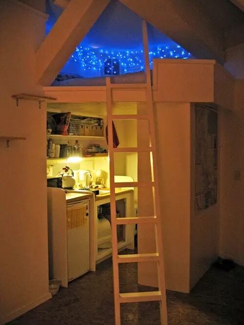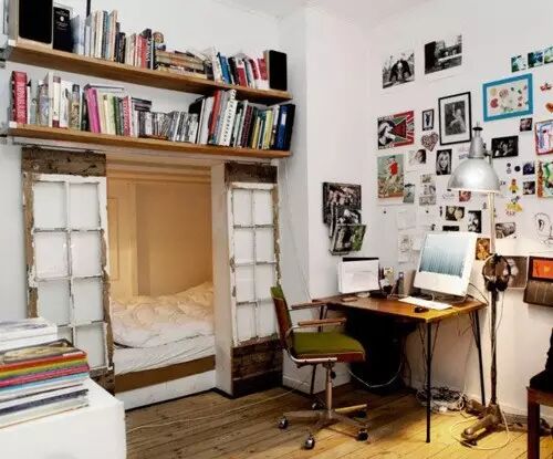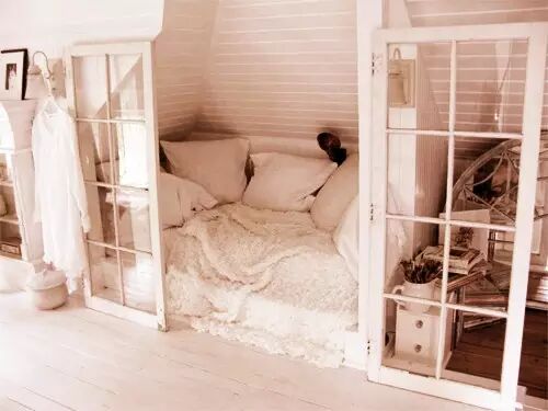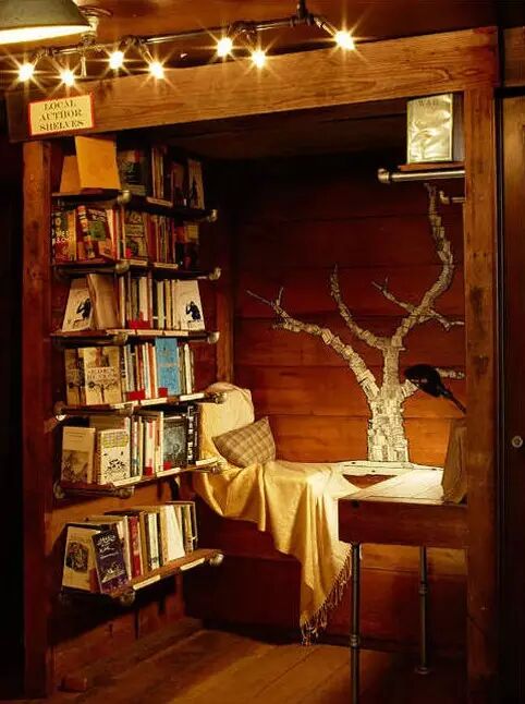 倾斜的天花板下不是工作间就是一个温暖的避风港,不出去消费,看会书也很好。
