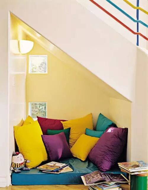 都说羡慕别人家有飘窗,在楼梯下安置这样一个既能躺又能坐还不占空间的角落,真的很妙呢!