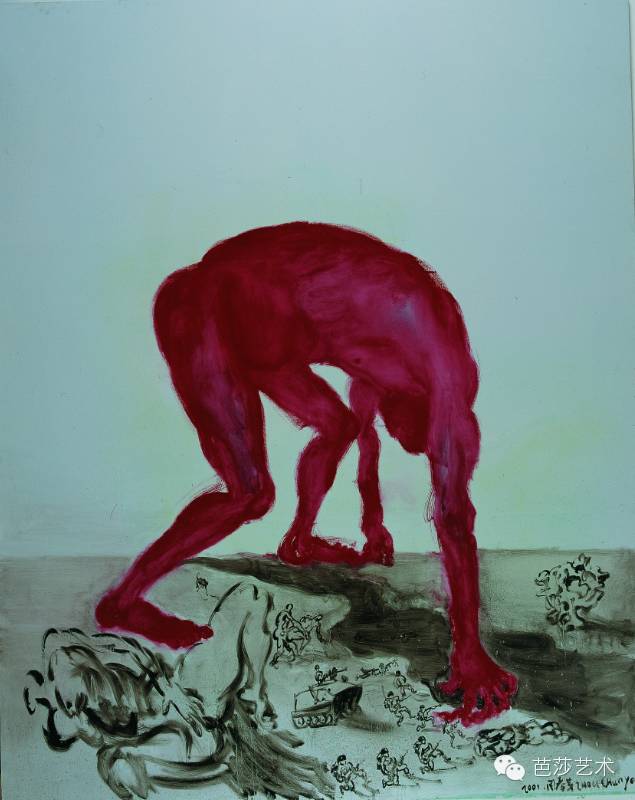 周春芽《跨过长江去》,布面油画,250×200cm2001