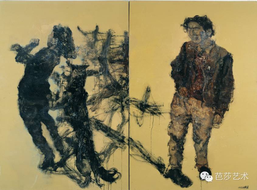 周春芽《黑根一家——男主人和女主人》,布面油画,190×260cm1995