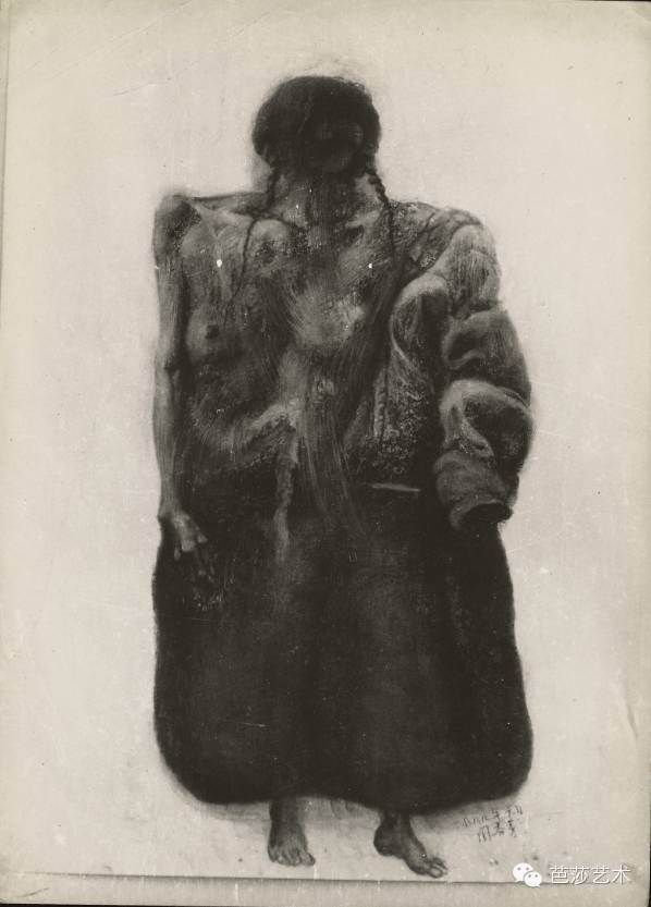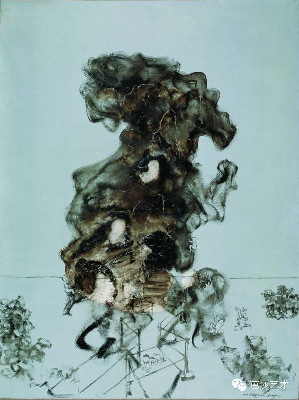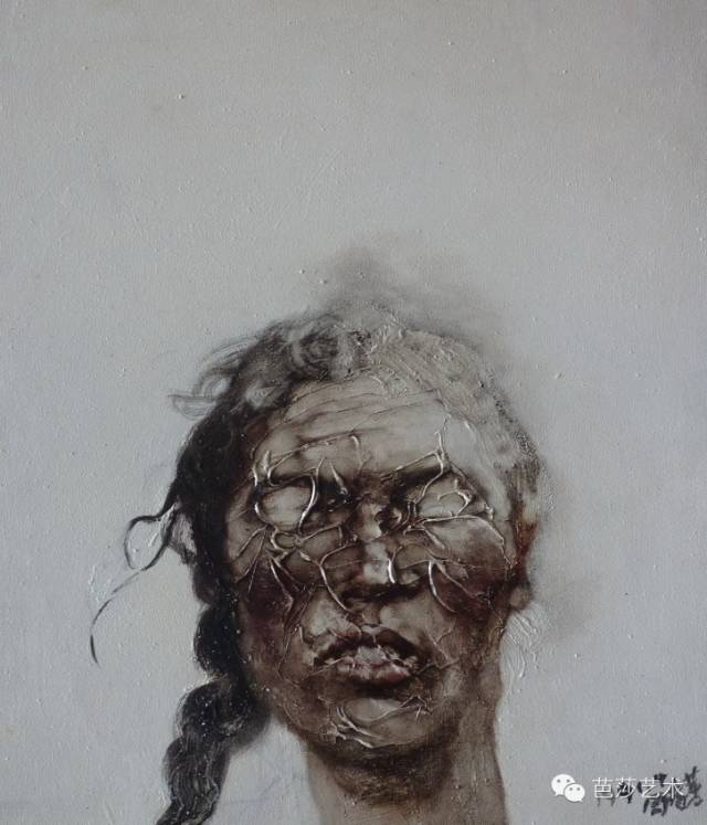 周春芽《模糊的脸》,炭画,120×100cm1988