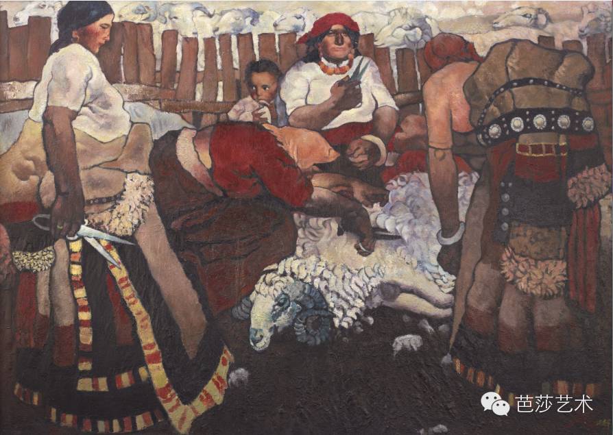 周春芽《剪羊毛》,布面油画,170×236cm1981