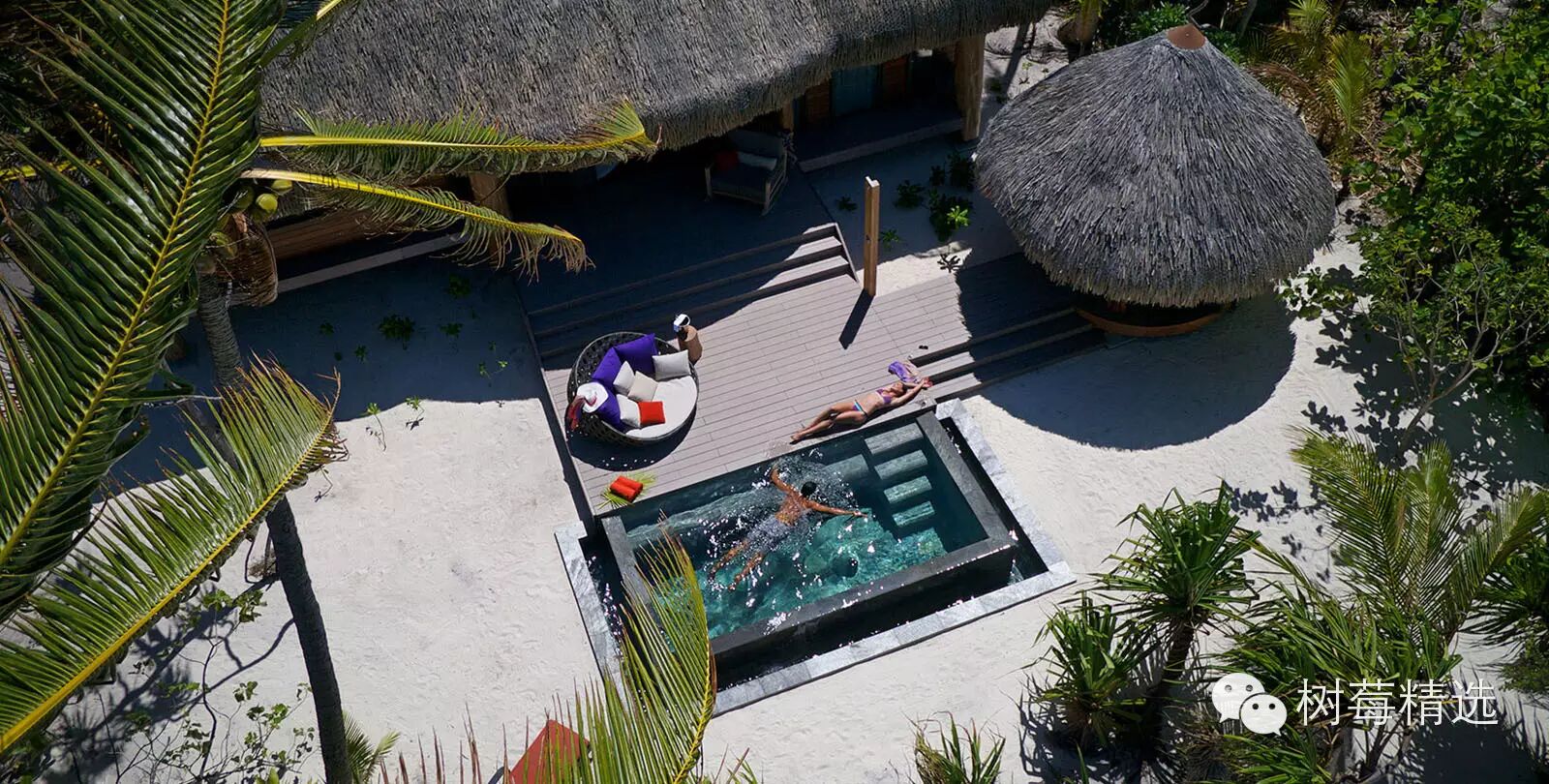 每人能享用到私人游泳池。度假村还有豪华的水上温泉,有机果园和菜园。还有小飞机往返大溪地。