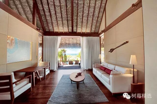 岛上有12间美妙的茅草小屋,由世界知名设计师Christian Liaigre打造,采用异国情调的木材和天然材料和谐创建,拥有超大浴缸和手工制作出的熔岩石。主人套房的面积达到22500平方英尺(约2000平方米)!至于私人厨师和活动顾问就不用说了。