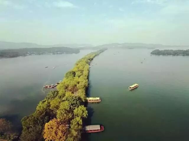 俯视白堤,但见波光粼粼,层林尽染,游人如织,水天一色。怎的不让人迷醉,不知今 夕何夕!