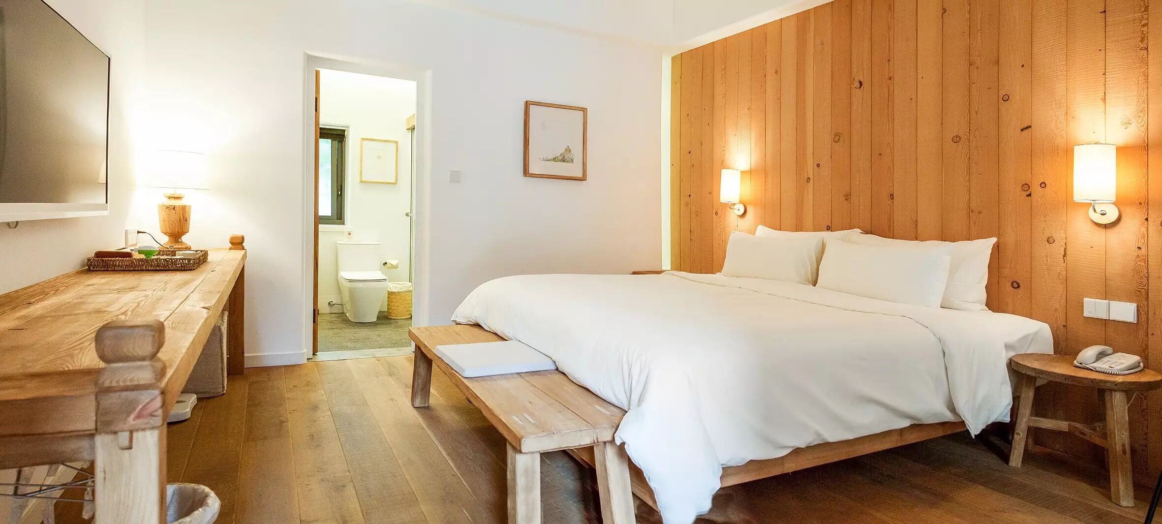 大片的做空、留白的空间弥漫着宁静平和的写意氛围。而删繁就简留下的便是全套自然系的muji与宜家家具,就连衣架都是muji的,整个酒店简直就是高逼格家具展馆。