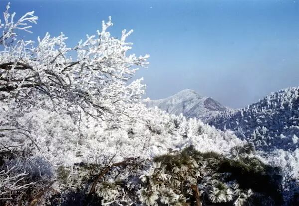夏季固然是衡山的好季节,但冬天的衡山雾凇也是独有的惊喜,世人便称它为“中国南方最美赏雪胜地”。天凝地闭,风厉霜飞之时,雾滴随着风飘扬,撞在树枝上,或是水气直接凝在枝条上,经南岳高山冷风吹拂,便形成了奇异无比的雾凇景观。雾凇千姿百态,丝丝似银针,颗颗像玉珠,朵朵若琼花,让人心旷神怡。
