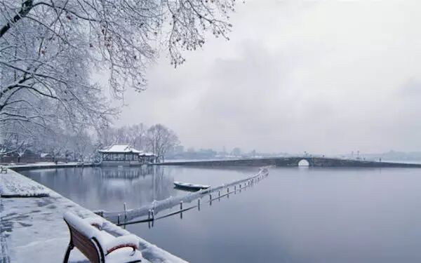 有道是“晴西湖不如阴西湖,阴西湖不如雨西湖,雨西湖不如雪西湖。”西湖下雪不像北方那么准时,也并不是什么时候都能赏到雪。若雪片飞来,西湖可赏雪的景点很多,最著名的当属“断桥”,桥侧有清朝康熙帝御笔石刻“断桥残雪”四字。相传,旧时断桥顶上有木栅门,每逢大雪过后,从附近的山上俯瞰桥上,中间木栅门的一段仿佛断了一截,“断桥残雪”一景由此得名。
