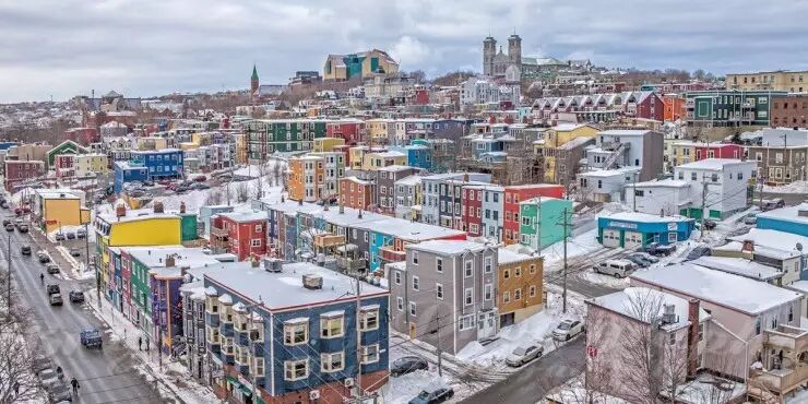 实际上,这里有一条特别的风景线贯穿城市间,唤作 Jellybean Row - 船长们用各种糖果色粉刷自己的房屋,回航时可以轻易的找到自己的家。如此便成就了如童话般丰富多彩的城市,在寒冷的加拿大冬季里,温暖人心~