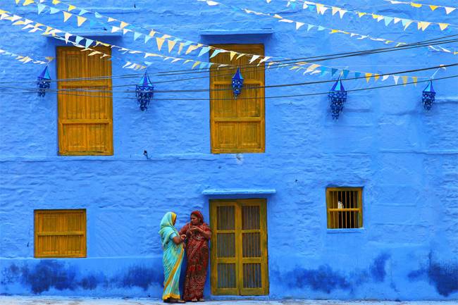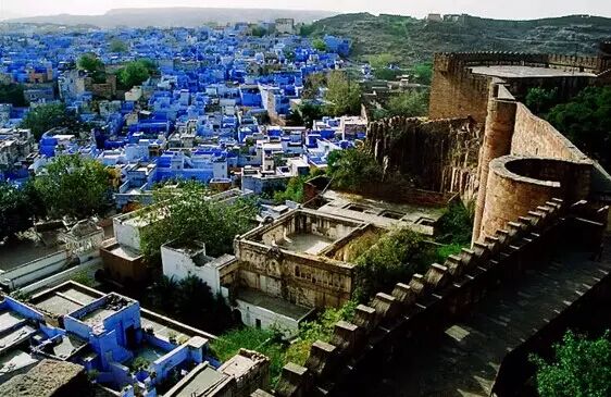 焦特普尔,印度。在印度Rajasthan(拉贾斯坦邦)的Jodhpur是印度的”蓝色之城“。在这座城内的房屋都刷满了印度的皇家颜色 - 蓝色。它不是简单的统一色调,而是集浅蓝、天蓝、水蓝、深蓝、湛蓝等多种蓝色相结合。