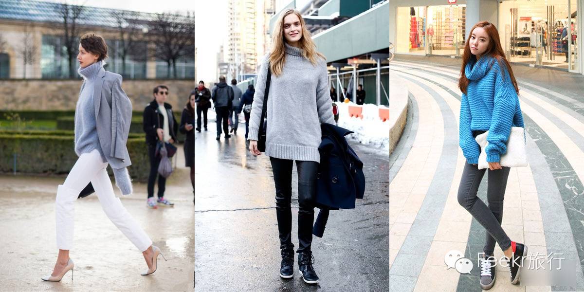 冬天才是能让时装精们真正开心的季节,而高领毛衣与紧身裤简单搭配在一起,就有了更多机会增加单品来装扮自己。