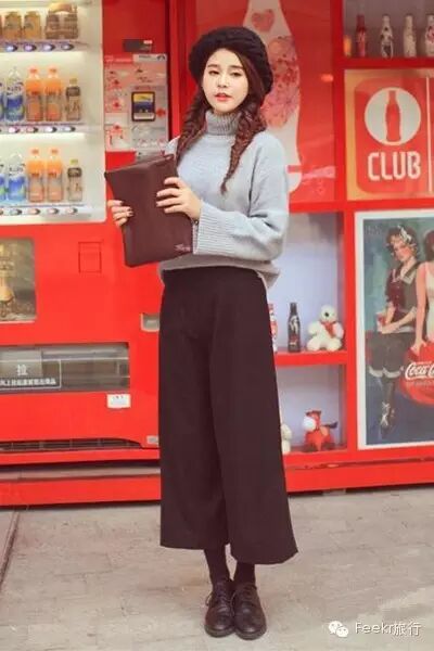 ▲浅灰色高领毛衣,气质灰色一直都是秋冬服装流行色,宽松版型,搭配黑色高腰阔腿,踩着小皮鞋,温柔清新。