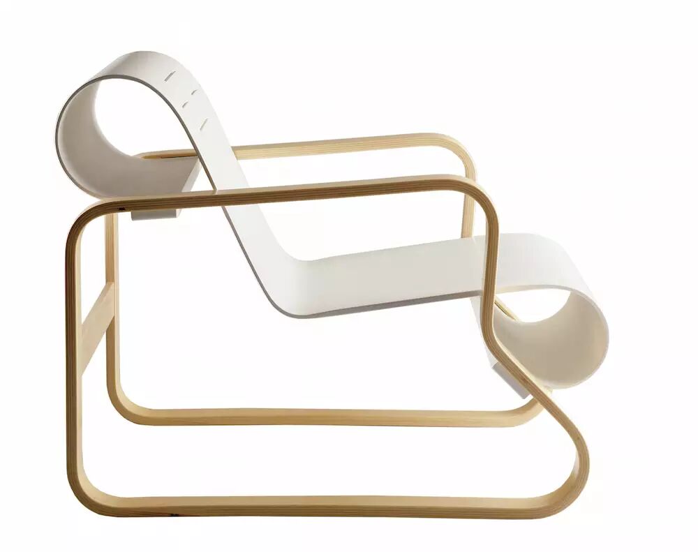 帕米欧椅是阿尔瓦·阿尔托所设计的家具中最为著名的作品,简洁、轻便又充满了雕塑般的美感。使用的材料全部是阿尔托三年多来研制的层压胶合板,相较实木材料,层压胶合板因为没有明显的木纤维方向,具有更强的抗弯强度和硬度。帕米欧椅最明显特征的圆弧形转折并非出于装饰,而完全是结构和使用功能的需要:靠背上部的三条开口也不是装饰,而是为使用者提供通气口,因此处是人体与家具最直接接触的部位。