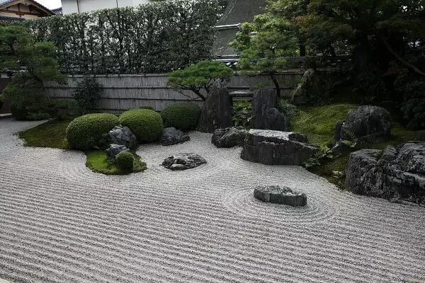 说到禅,我们应该见见其独具特色的枯山水。其本质意义是无水之庭,多见于禅宗内的闲庭小院,它们面积不大,却要在“方寸之地幻出千岩万壑",方法就是写意、就是象征。