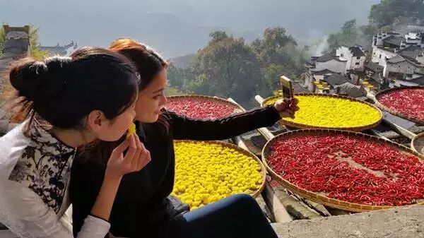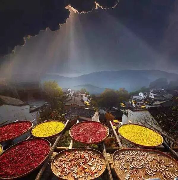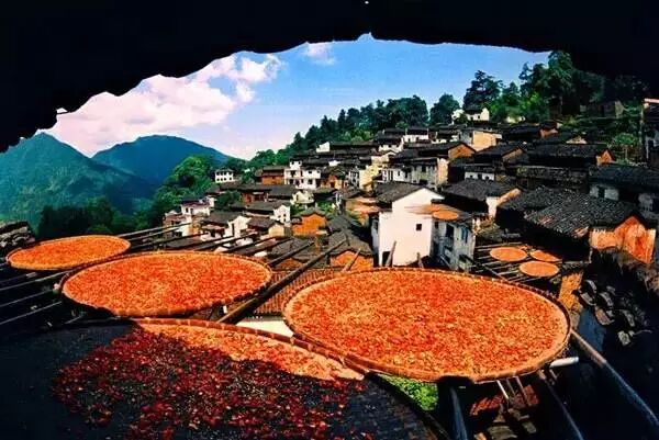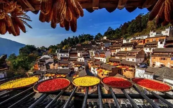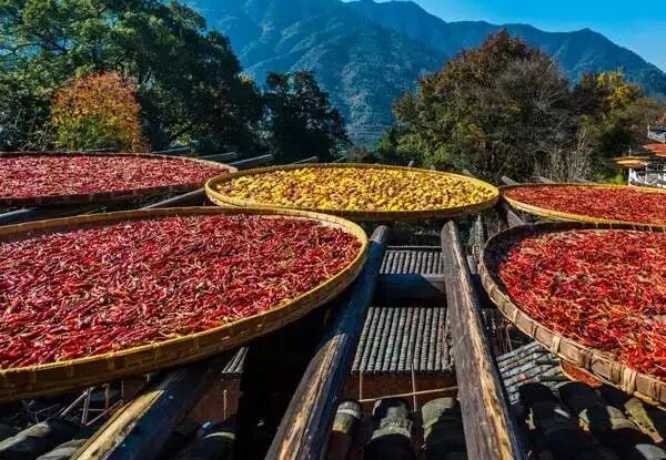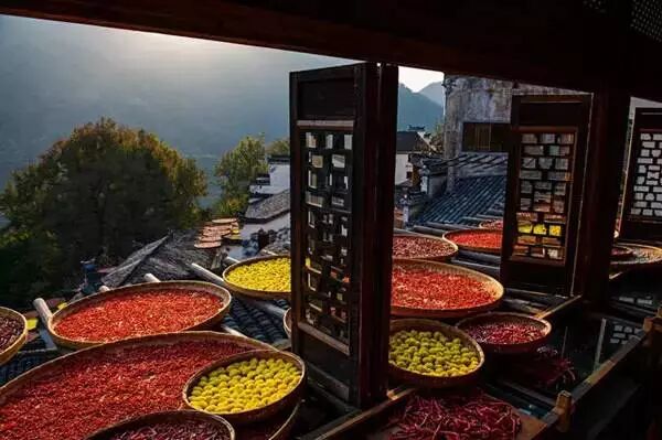 “晒秋”是重阳节的习俗之一,也是中国南方村落里典型的一种农俗现象。被评为“最美中国符号”的篁岭古村,更是将“晒秋”演变成了体现他们特殊生活场景的一大“图腾”。