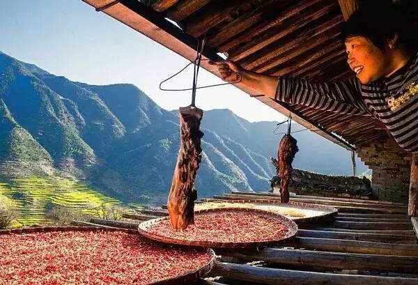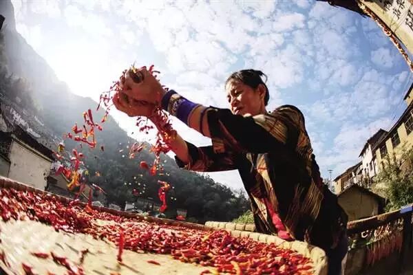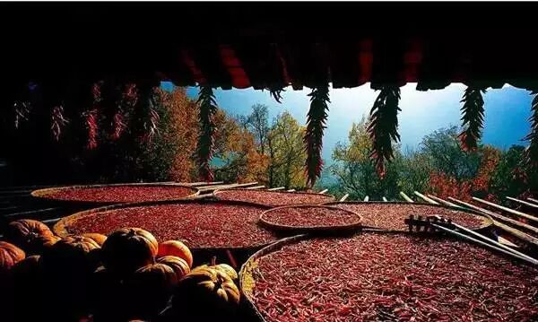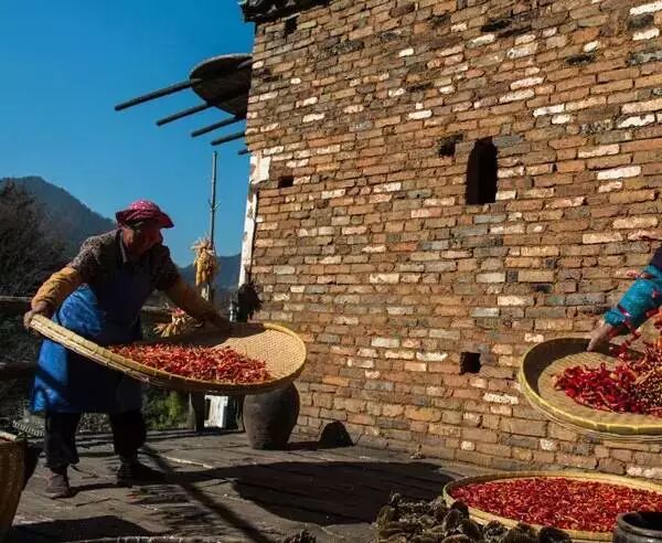由于地势复杂,平地极少,村民的农俗活动受到了很大的限制。然而,也正因为特殊的自然条件,他们才另辟蹊径,以粮作画,将“晒秋”演变成为具有极强地域特色的农家盛典。