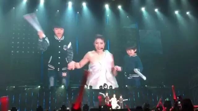 冬至(12月22日)晚上,Kelly的演唱会上出现了两位超级嘉宾——她的两个宝贝儿子,6岁的大儿子“虾饺仔”刘升及3岁的么子“小龙包”刘琛,两兄弟非常可爱,与观众一起挥动荧光棒,全场掌声如雷。陈慧琳的丈夫Alex则在台下笑着拍照,一家四口非常温馨。