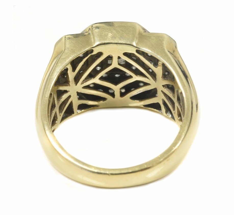 戒指采用八角形设计,以10K金制作,共镶嵌56颗钻石,整齐地排列于纵横的轨道中。这枚戒指是 Elvis Presley 赠送给保镖 Sam Thompson 的礼物,他也是 Elvis Presley 女友的哥哥。