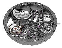 此次 Roger Dubuis 运用的碳纤维材质名为「SMC」(Sheet Moulding Compound),拥有重量轻耐腐蚀的特点。这种材料原本应用于航天工业,由碳纤维、树脂、钢在高温下锻压形成。