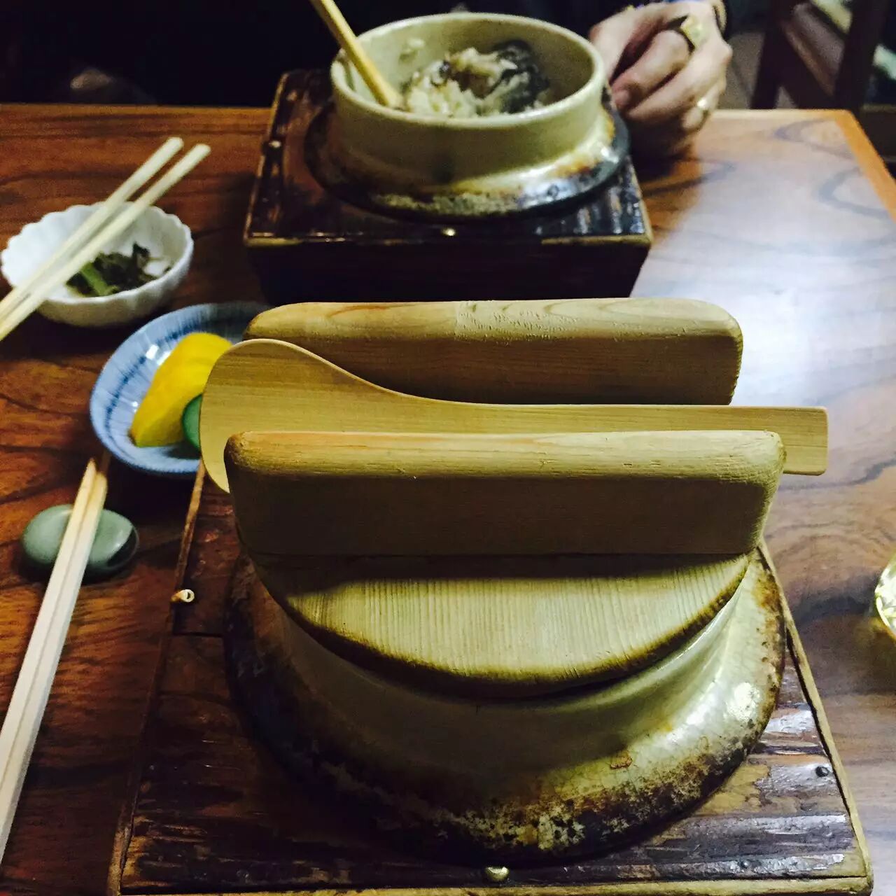 隆重要说的是这道釜饭(かまめし)。釜饭其实就是类似广式煲仔饭的“用锅焖蒸好的饭”,在日本多用炭火慢慢地蒸,据说过去只在冬季比较寒冷的地区常见,现在比较流行起来了,很多传统日餐馆子都有提供。