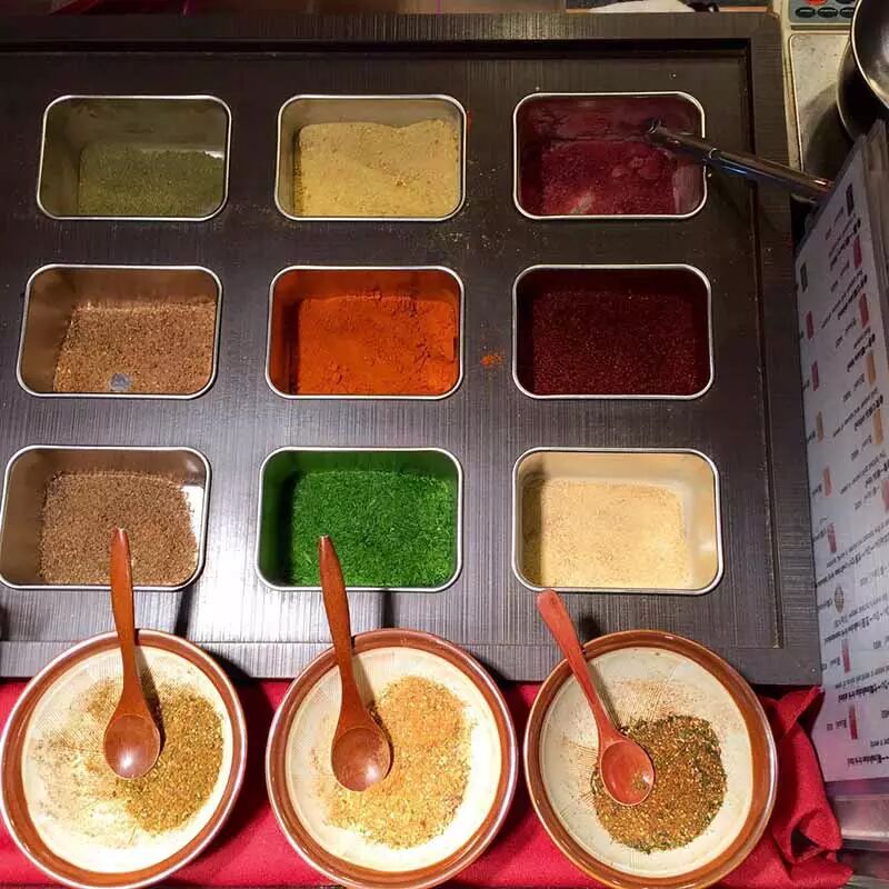 值得一提的是这里的每一家店都需要客人自己在店门外的机器上自助点餐,机器上图文并茂的清楚显示了价钱、选填的各种加料、口味等,完全没有语言障碍。