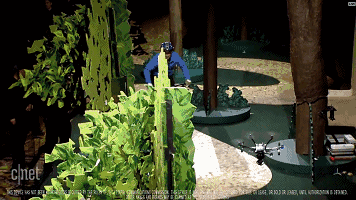 这完全是要搞某种新技能的姿势啊~~为了展示这种新技能,Intel在室内搭建了一个类似森林的复杂环境,注意在这个森林里GPS信号完全被屏蔽了。。。