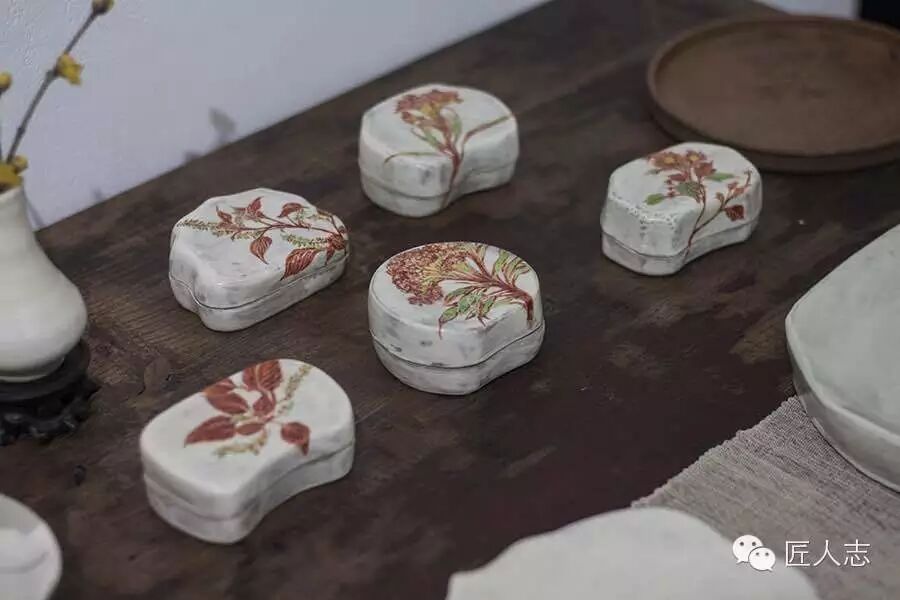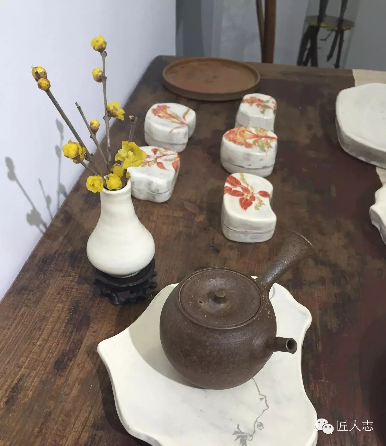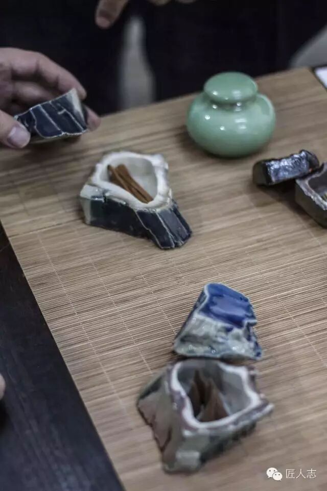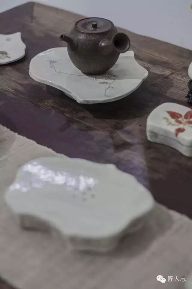 喜歡玉姍老師依'宋孩兒枕'而設計的茶承、茶盤,還有那些瓷盒上的小花兒。台灣李明松老師的茶具上的特別設計很雅氣。樂耕老師高山流水的香爐很有意思,香霧會隨著香爐的結構緩緩流淌。還有頤寧的香,盛環的素餐。人人都是手藝人的時代離我們不遠了,你也學點手藝吧!