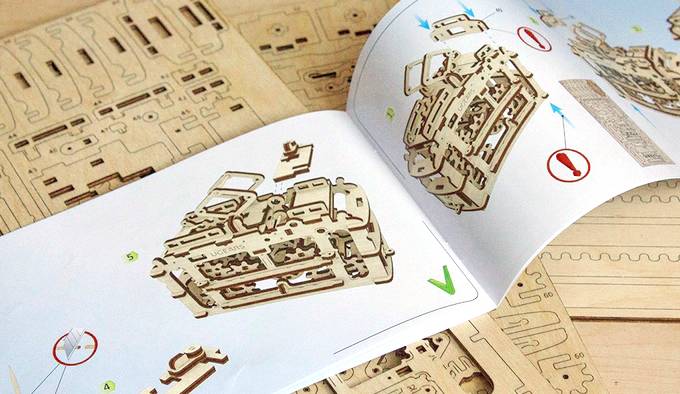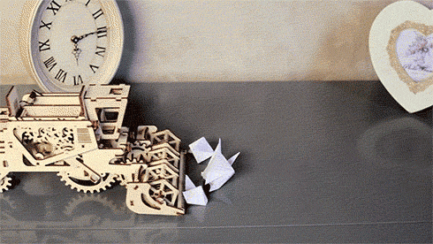 它叫 UGEARS,是乌克兰工作室 Ukrainian Gears 的作品,总共由 480 片木制结构组成。特别的是,这 480 片零件不需要一丝一毫的胶水或粘合剂就能完全拼装。