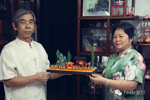 毛猴家庭艺术馆就是由第五代传人郭福田、崔玉兰夫妇共同经营的。他俩算是土生土长的地道的北京人。房屋虽然不大,但摆放的毛猴工艺品的展架却占了两面墙,一面墙上还贴满了关于毛猴的照片与媒体的报道。郭氏夫妇待人接物有着老北京人特有的和气和分寸,尽管毛猴的历史他们已经讲了无数遍,但每当有游客走进来问起时,夫妇俩还是愿意为想要了解毛猴的人讲解一遍又一遍。