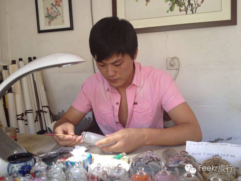 在大金丝胡同里,隐藏着一座建于明代的四合院。这座民居内有一个专功内画的大男孩,他叫光远。内画这门手艺从清代起就流行于宫廷之间,达官贵人们以鼻烟壶为“画纸”,方寸间展露自己的收藏眼光。