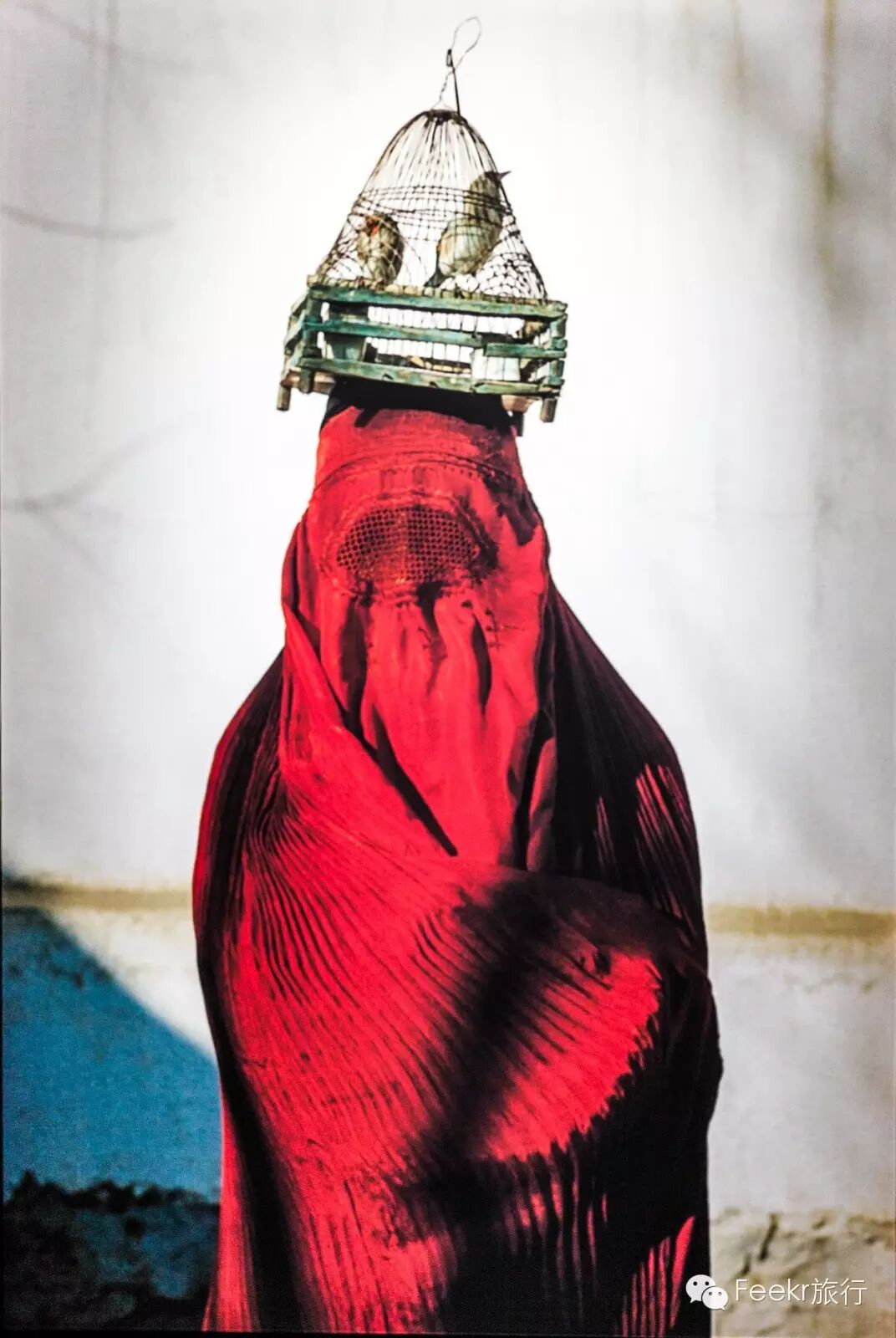 阿富汗已婚妇女,穿着民族服饰头顶鸟笼,参加当地的庆典。她们的生活也像头顶的那笼金丝雀一般。