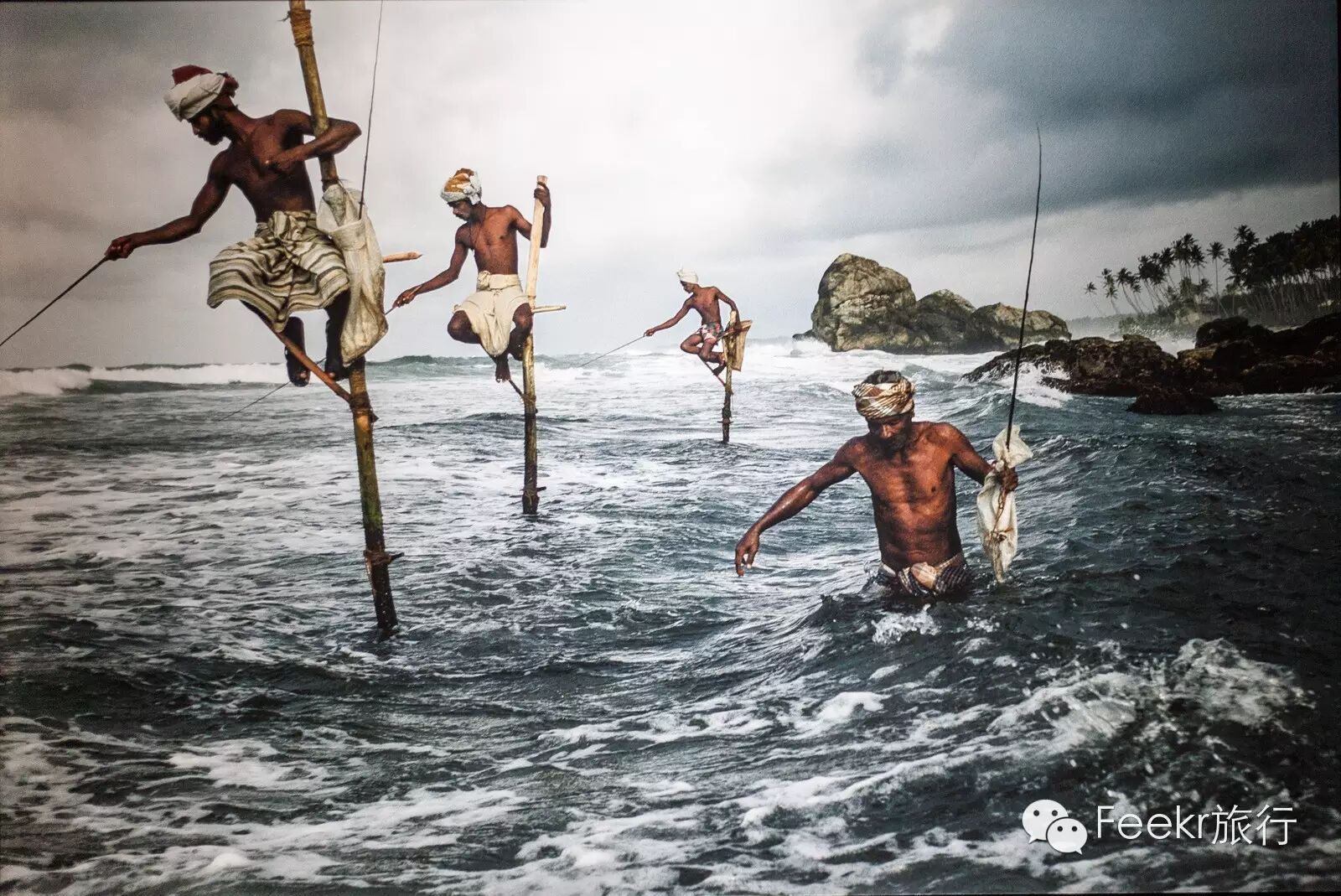对,就是那位拍摄“阿富汗少女”的摄影师。三名身着传统服饰的斯里兰卡渔夫蹲坐在木桩上钓鱼,和谐一致的动作如同苍鹰般优雅。