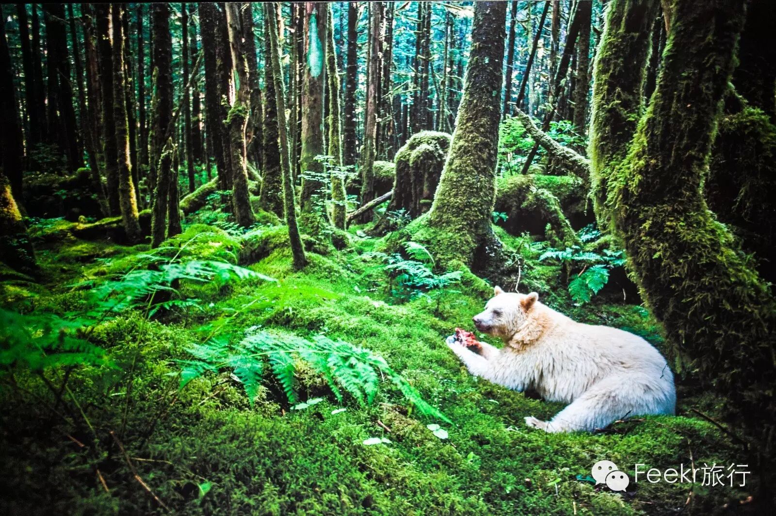 在不列颠哥伦比亚省布满苔藓的热带雨林中,有一棵活了一千年高耸的红雪松,和有白色皮毛黑熊。她被当地人称为“灵熊”。