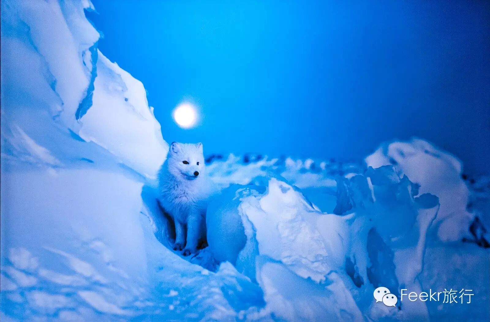 冬季的皎洁月光与一身雪白的北极狐相映成趣,北极狐这一身皮毛是北极动物中最保暖的,可以抵御零下50摄氏度的低温。
