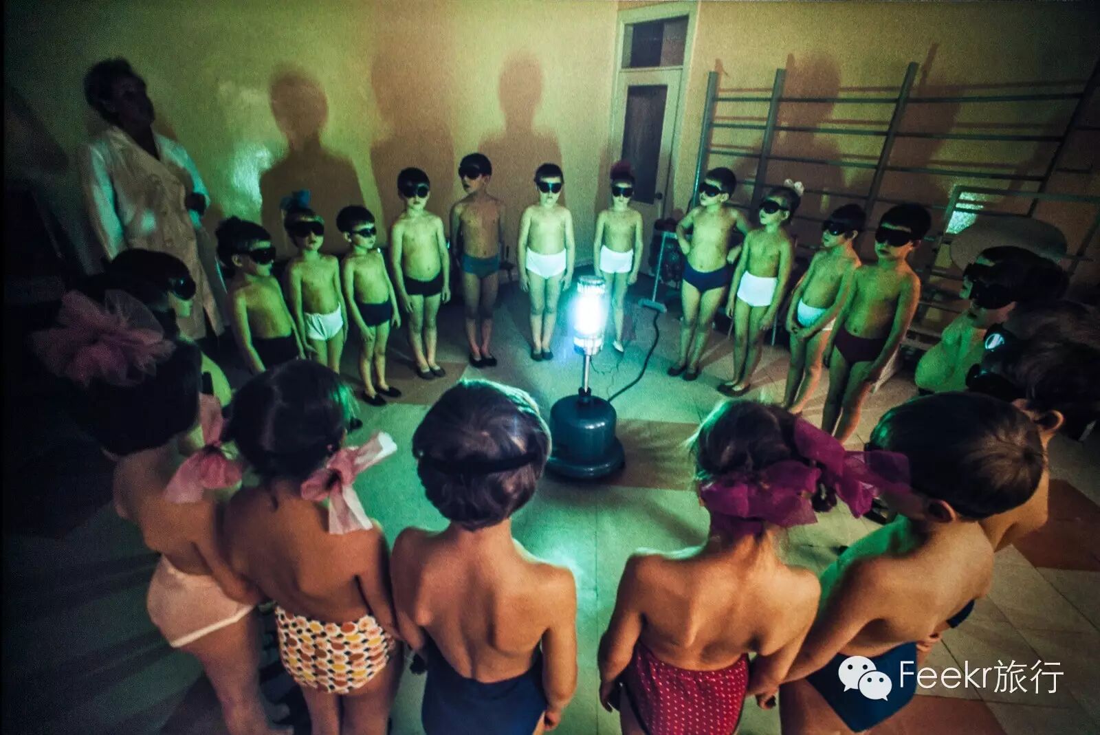 在俄罗斯北极圈以北的摩尔曼斯克,儿童聚集在紫外灯周围以避免漫长冬季可能引发的维生素D缺乏症。